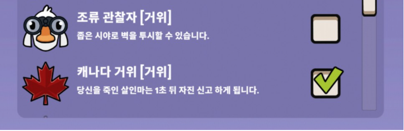 하지만 숨겨진 플레이어를 거위가 지나가면 자동으로 신고가되며 캐나다 거위 경우 신고스킬이 없어